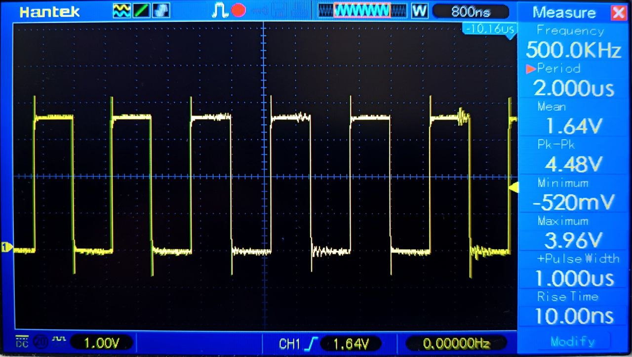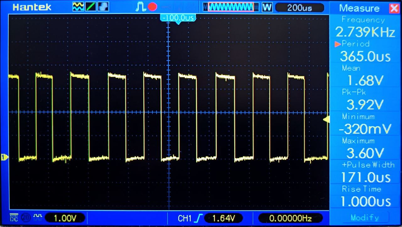 Мы также подключили осциллограф к 7-му пину, чтобы подтвердить программные расчеты физическими замерами.