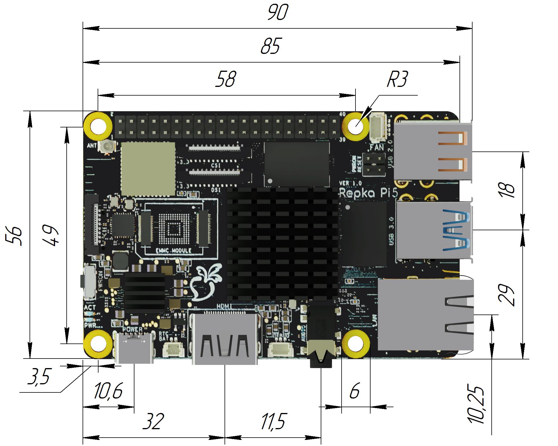 Вы можете скачать чертежи (3D модели) Repka-Pi 4 для использования в собственных проектах при проектировании встраиваемых решений