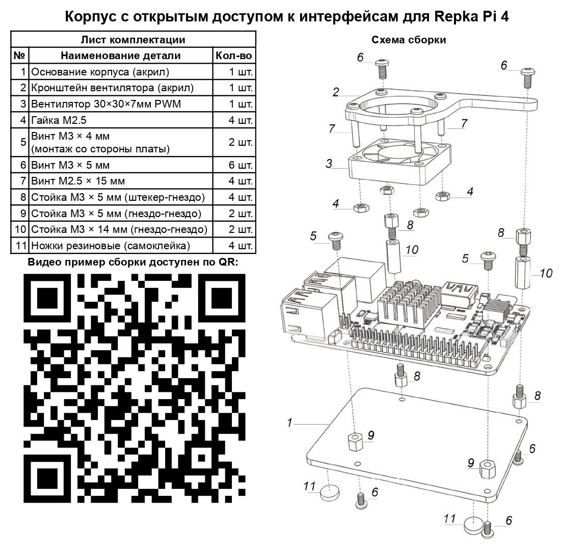 Схема сборки корпуса с открытым доступом к интерфейсам для Repka Pi 4 #