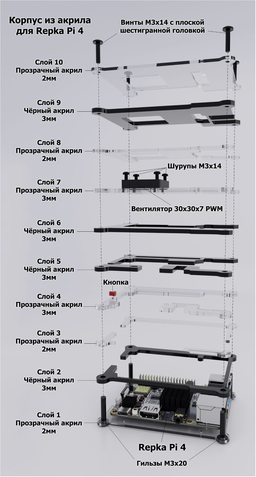 Схема сборки закрытого корпуса для Repka Pi 4 #